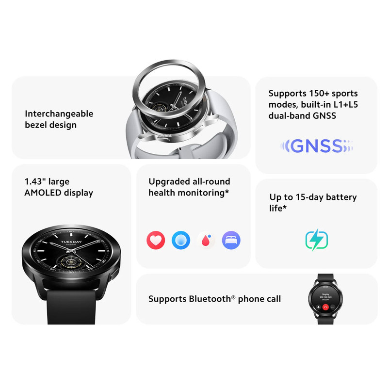 قابلیت های ویژه | شارژدهی تا 15 روز /استاندارد مقاومت در برابر نفوذ آب 5ATM /قابلیتهای مکانیابی BeiDou, GPS, GLONASS, Galileo, QZSS /بلوتوث 5.2 |