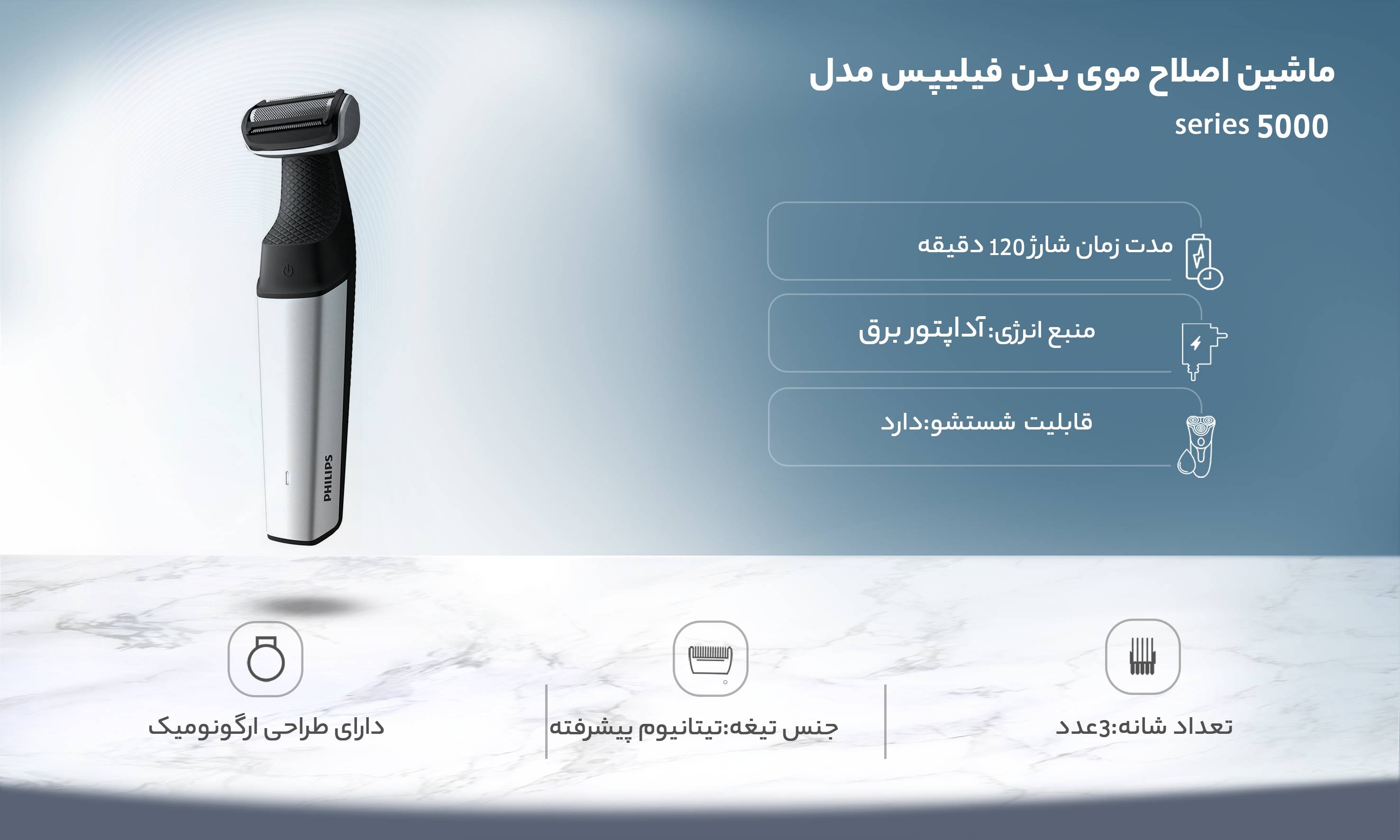 ویژگیهای ماشین اصلاح موی بدن فیلیپس مدل series 5000