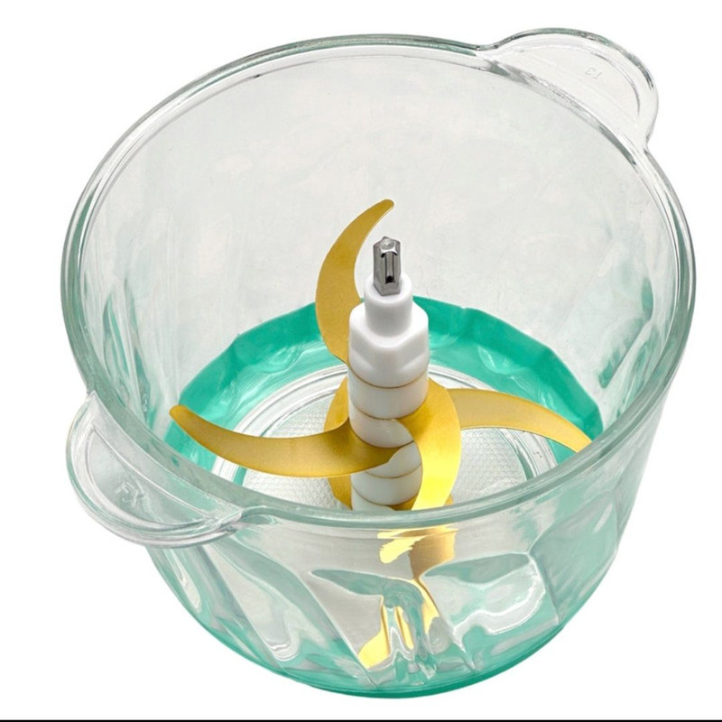 | سایر توضیحات | ویژگی توضیحتیغهها ۶ تیغه تیتانیوم طلایی، احتمالاً دارای ۴ تیغه زاپاسدکمهها دو دکمه روی درپوش: سرعت کم/PULSE و سرعت زیادتوان تقریباً 4۰۰۰ وات برای اکثر مدلهاظرفیت بین ۳.۸ تا ۴ لیتراستفاده عملی مناسب برای خرد کردن سبزیجات، گوشت، پورهها، حتی کارهای نیمهصنعتیرنگ سبز (معمولاً بدنه پلاستیکی یا کاسه شیشهای سبز) |
