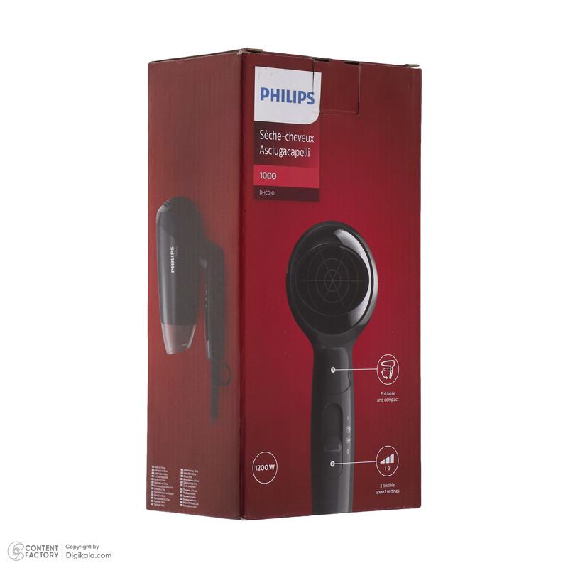 سشوار مسافرتی فیلیپس مدل BHC010 ترکیب پایداری از توانایی خشک کردن و حالت دهی را با هم دارد. این سشوار طراحی جمع و جوری دارد که هم میتوان از آن در خانه استفاده کرد و هم آن را به سفر برد. به این شکل هرجایی که باشید میتوانید حالت دلخواه موهایتان را نیز داشته باشید! این سشوار 1200 واتی دارای 2 تنظیم سرعت و دمای مختلف دارد که بنا به نظر شما قابل انتخاب است. همانطور هم از اسم آن معلوم است قابلیت جمع شدن دارد تا انبارش آسانی داشته باشد و در کنار ویژگی ارگونومیک و سبک بودن، آن را یکی از سشوارهایی میکند که طراحی مدرنی دارد.