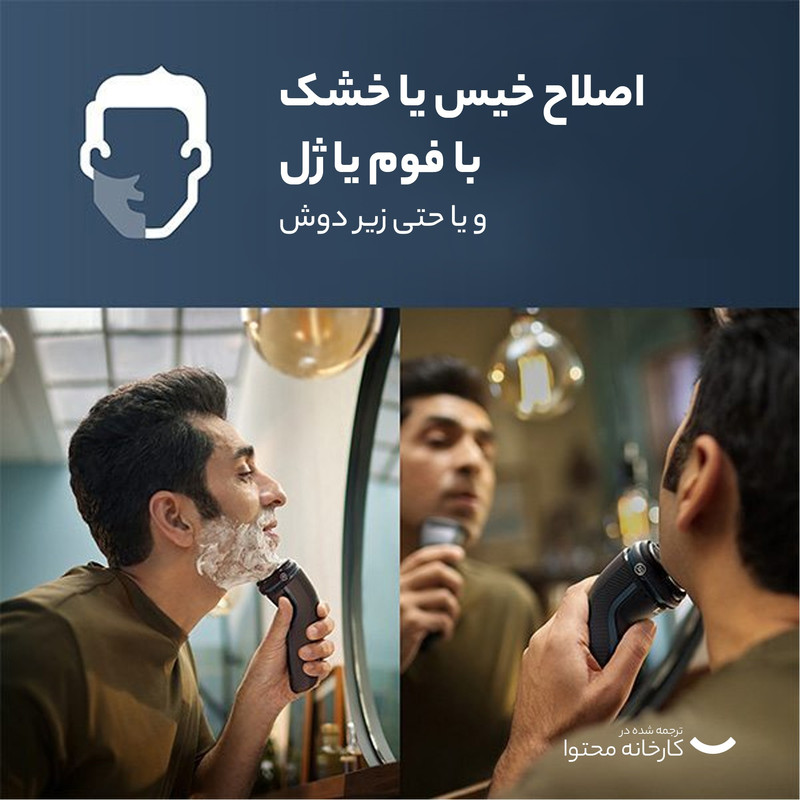 سایر مشخصات | شارژر USB - سری 5 بعدی - با 1 ساعت شارژ 1 ساعت ران تایم - شارژ سریع 5 دقیقه ای - تر و خشک (کف٫ژل یا فوم ریش ) یا خشک - تیغه های استیل پیشرفته - 100٪ ضد اب - دارای خط زن - تکنولوژی Anti Corrosion - سری محافظ تیغه |