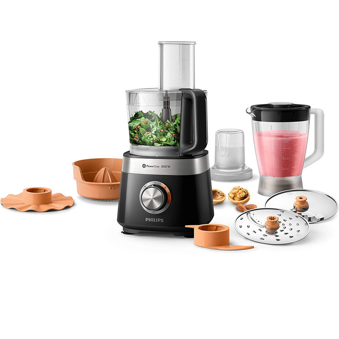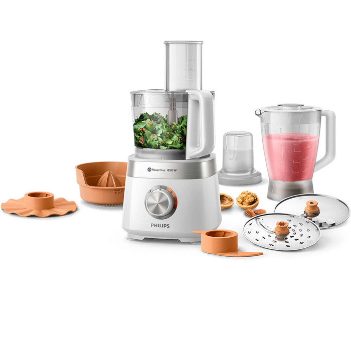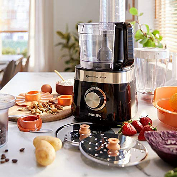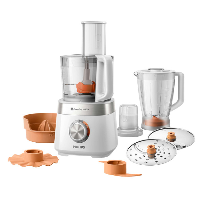 | سایر ویژگیها | غذاساز 31 کاره بالاترین مدل از سری جدید و حرفه ای 7xxx غذاسازهای فیلیپسمجهز به فناوری Power Chop (بهترین نتیجه برای عملکردهای دستگاه)قابلیت خرد کردن یخترکیب شکل تیغه ، برش زاویه دار و کاسه درونی به گونه ای است که مواد سخت و نرم را می توان با بهترین نتیجه تحویل می دهدسرعت پیش فرض هر پروسه با رنگبندی اکسسوری ها و ولوم سرعت دستگاه مشخص شده استقابلیت رنده در 3 مدل (دیسک رنده حلقه ایی متوسط دو طرفه می باشد، چیپس ساز و رنده )قسمتهای پلاستیکی دستگاه که در تماس با مواد غذایی هستند عاری از هرگونه مواد مضر سلامت می باشند |