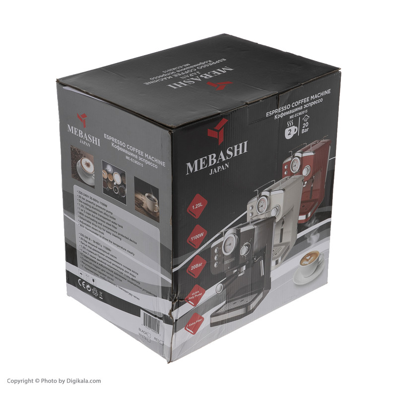 اسپرسوساز مباشی مدل ME-ECM2015 با ظرفیت مخزن 1.2 لیتر و قابلیت تهیه نوشیدنیهای اسپرسو، کاپوچینو یک گزینه مناسب برای استفاده در خانه، محل کار یا حتی کافیشاپها به حساب میآید. توان دستگاه 1140 وات و قدرت فشار دستگاه 15 بار است. این اسپرسو ساز با پودر قهوه کار میکند. هر دو فیلتر این دستگاه از استیل ضدزنگ ساخته شده است و در مقابل رطوبت و شستشو دچار آسیب و تغییر رنگ نمیشود. دماسنج آن مدل عقربهای است که دما را بهراحتی میتوان از روی آن خواند. میزان بخار این اسپرسو ساز را از طریق پیچ تنظیمی که روی آن طراحیشده است میتوان تنظیم کرد. قسمت زیر نازل اسپرسو، سینی چکه گیر با قابلیت جداسازی از دستگاه وجود دارد که از کثیف شدن میز و محل قرارگیری دستگاه جلوگیری میکند. قابلیت محافظت در برابر دما و فشار بیش از اندازه، قابلیت تولید کف شیر و گواهی استاندارد CE از دیگر ویژگیهای این اسپرسو است.