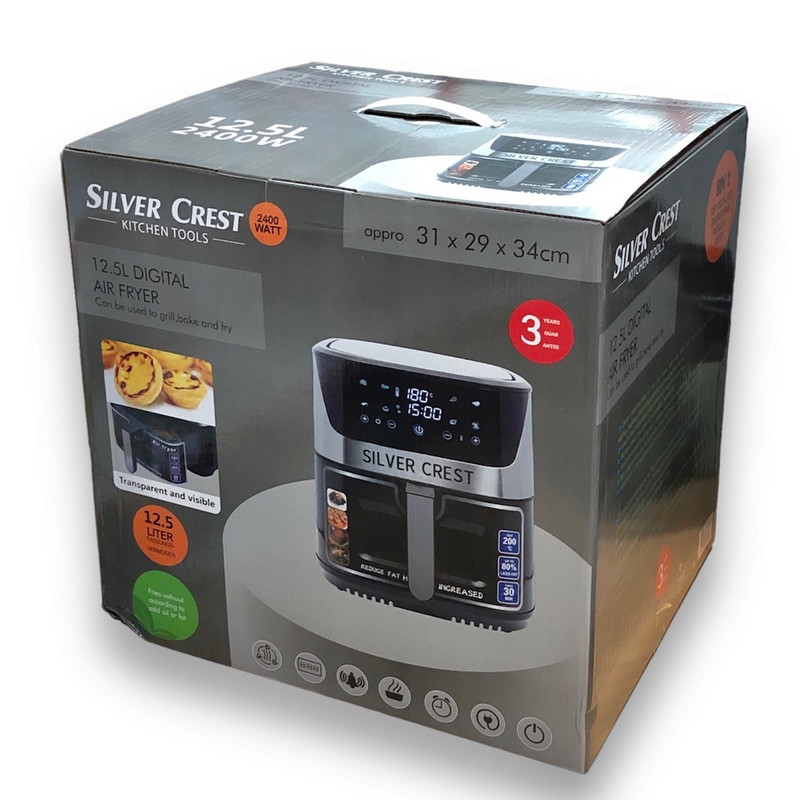 سرخ کن بدون روغن سیلورکرست مدل 12/5 با ظاهری چشمنواز و ظرفیت پخت خوب، میتواند برای پخت انواع غذاها بدون روغن و به شکل رژیمی مورد استفاده قرار گیرد. برند سیلور کرست به عنوان یکی از برندهای بسیار خوش قیمت و کارآمد در ایران معروف است. این برند (Silvercrest) تحت لیسانس آلمان و لهستان فعالیت میکند و عمدتا تیغهها، بدنه و موتور محصولات آن از طریق تکنسینهای آلمانی و برترین فناوریهای روز دنیا تولید میشود و قطعات آن در کشور چین مونتاژ میشوند.