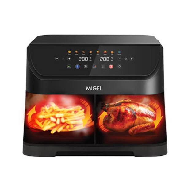 سرخ کن کم روغن میگل(هواپز) مدل GAF 206 با قابلیت تنظیم دما از 35 تا 230 درجه سانتیگراد و صفحه تمام لمسی رنگی همچنین خاموش شدن خودکار، وسیله ای بی نظیر جهت طبخ انواع غذا به صورت یکنواخت و کاملا رژیمی می باشد. امکان پخت دو غذای متفاوت به صورت همزمان از دیگر ویژگی هایی است که سبب تمایز این محصول با دیگر کالاهای مشابه خود می شود.