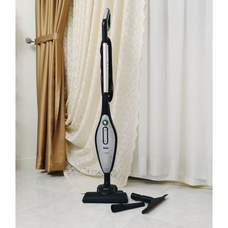 جاروبرقی «فکر» مدل STARKY ÖKO بهترین گزینه برای کسانی است که برای تمیز کردن و جارو کردن محل کار یا آشپزخانه حوصله استفاده از جاروبرقی های بزرگ را ندارند. ویژگی این جاروبرقی با توان 800 وات واقعی قابل تبدیل شدن از حالت عصایی به حالت دستی است که می تواند برای تمیز کردن محل های کوچک مثل آشپزخانه، کارگاه یا اتاق های کوچک و انباری از آن استفاده کرد. کلید روشن، خاموش و افزایش و کاهش قدرت موتور روی دسته قراردارد که در حالت دستی جارو به خوبی در دست جای می گیرد و کار خود را انجام می دهد. در حالت عصایی جاروبرقی فکر مدل استارکی از پارویی خطی ساده بهره می برد و این پارویی بر روی چرخ های پشتی همین قسمت بر روی سطوح حرکت می کند. سیم برق به دور قلاب های روی دسته می پیچد تا زمان خاموش بودن دستگاه سیم بلند دستگاه باعث شلوغی و به هم ریختگی نشود. گنجایش 1 لیتری مخزن جمع آوری زباله دستگاه را بسیار کارآمد کرده است. سری های گوشه و کناره برای حالت دستی هم در نظر گرفته شده و عرضه می گردد. فکر محصولات خود را به 106 کشور جهان از جمله ایران و ترکیه صادر می نماید. این کارخانه جزو اولین برند های لوازم خانگی در دنیا است که توانسته هر ساله با نوآوری، تولید و حفظ کیفیت در بازار لوازم خانگی برقی پیشرفت چشمگیر داشته باشد. استفاده از جاروبرقی کوچک و اصلاحا دم دستی برای منازل و آپارتمان های امروزی بسیار مورد نیاز می باشد، این جارو برقی جزو جاروهای سطلی و بدون کیسه هست که این جاروها به تعویض نیاز ندارند و کافی است مخزن پر از آشغال خالی شود. همچنین این محصول ساختاری کوچک و ارگونومیکی دارد ، به راحتی میتوان آن را در کمد قرار داد و در حین استفاده پارویی و دسته ها را به راحتی وصل نمود.