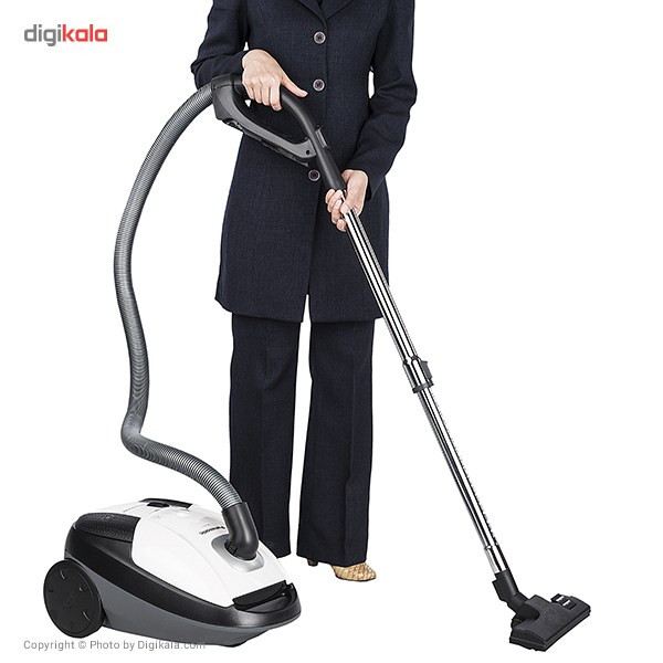 جاروبرقی مدل «MC-CG713» از جاروبرقیهای کیسهای شرکت «پاناسونیک» (Panasonic) بوده که در رنگهای سفید، آبی و قرمز تولید و عرضه شده است. این دستگاه علاوهبر بهرهمندی از قدرت و کیفیت بالا از امکانات متعددی نیز برخوردار است که از مهمترین آنها میتوان به قابلیت دمنده اشاره کرد. گاهی با سریهای مختلف جارو و تغییر قدرت مکش همچنان نمیتوان برخی نقاط دسترسناپذیر بهویژه زیر کابینتها یا مبلمان را بهخوبی جارو کرد؛ اما با قابلیت دمنده در جاروبرقی پاناسونیک مدل MC-CG713 کافی است لولهی خرطومی را به بخش دمنده متصل کرده و دستگاه را با قدرت موردنظر روشن کنید تا گردوخاک یا زبالهها از آن نقطه دور و بعداً جارو شوند. گنجایش بالای مخزن دستگاه از دیگر امکانات آن است و کیسه یا پاکت جارو دیرتر پر میشود؛ علاوهبراین نشانگر میزان پرشدن مخزن نیز روی دستگاه تعبیه شده است که به کمک آن پی میبرید که چه زمان به تعویض پاکت یا تخلیهی کیسهی دائمی نیاز دارید. لولهی این جاروبرقی نیز تلسکوپی بوده و از کلید تنظیم مکش هم برخوردار است. روی سری پارویی یا نازل هم کلید پایی تنظیم حالت پارویی قرار گرفته که برای جاروکشی سطح فرش و سرامیک قابلتغییر است. از دیگر قابلیتهای قابلتوجه این مدل میتوان به فیلتر خروجی قدرتمند آن اشاره کرد. جاروبرقی MC-CG713 با برخورداری از فیلتر HEPA، هوای خروجی را تا بیشترین حد تصفیه میکند. دستهی این مدل هم با طراحی منحصربهفرد و جدیدی تولید شده است که به جذابیت و زیبایی این محصول میافزاید. متعلقات یا سریها هم زیر این دسته قرار گرفتهاند تا بهراحتی در صورت نیاز در دسترس باشند و تعویض شوند. گفتنی است شرکت پاناسونیک، تولیدکنندهی این دستگاه، سالها در تولید و عرضهی انواع لوازم برقی ازجمله لوازم برقی خانگی و صوتیتصویری فعالیت داشته و ضمن ارائهی محصولاتی که همواره نوآوری و کیفیت را با هم داشتهاند، رضایت مصرفکنندگان این حوزه را جلب کرده است.