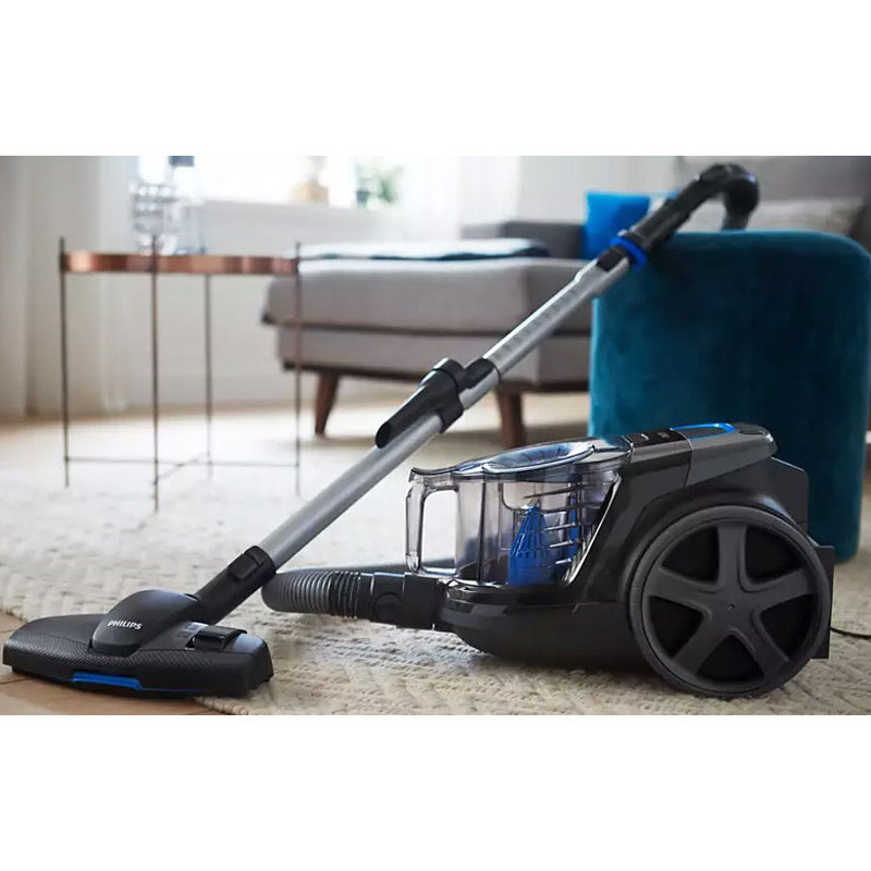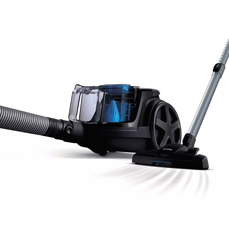 فیلیپس در طراحی این مدل، ترکیبی از کیفیت و راحتی را ارائه کرده است. ابعاد جمعوجور ۲۴۷×۲۸۱×۴۱۰ میلیمتر و وزن سبک ۴.۴ کیلوگرم، حمل و جابهجایی آن را آسان کرده است. این جاروبرقی به سه چرخ پلاستیکی مجهز شده که حرکت نرم و بدون محدودیتی را بر روی سطوح مختلف امکانپذیر میکند.لوله تلسکوپی فلزی دوقطعهای، امکان تنظیم ارتفاع را برای کاربران مختلف فراهم کرده و با اتصال ActiveLock، لوله و سریها بهراحتی به یکدیگر متصل میشوند. سیمجمعکن خودکار از دیگر ویژگیهای طراحی این مدل است که جمعآوری سیم برق را بدون نیاز به دخالت دستی انجام میدهد.این جاروبرقی علاوه بر قدرت بالا، امکاناتی را ارائه میدهد که کاربری آن را راحتتر میکند. دو عدد پارویی برای تمیز کردن سطوح مختلف همراه دستگاه ارائه شده است. طول کابل برق ۶ متر بوده که در مجموع، شعاع عملکردی ۹ متر را پوشش میدهد. این محدوده حرکتی مناسب، امکان جاروکشی یک فضای وسیع را بدون نیاز به تغییر مکرر پریز برق فراهم میکند.یکی دیگر از ویژگیهای این مدل، محدوده صدای ۸۲ دسیبل است. این سطح صدا، جاروبرقی را در دسته مدلهای نسبتاً کمصدای بازار قرار داده و موجب کاهش آلودگی صوتی در محیط میشود.