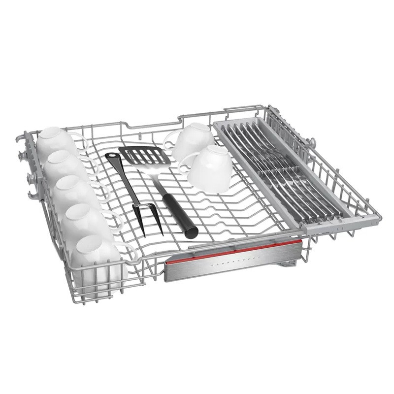 ظرفشویی بوش BOSCH مدل SMS8ZDI86 با رده انرژی +++A جزء سری 8 لباسشویی های بوش بوده که دارای ظرفیت 14 نفره میباشد و حجم زیادی از ظروف را در هر بار استفاده شستشو میدهد. پنل این ظرفشویی شامل 8 برنامه شستشو و 5 برنامه ویژه است. برنامه های شستشو شامل شستشوی قوی، شستشوی اتوماتیک، شستشوی اقتصادی، شستشوی آرام یا شبانه، شستشوی ظروف شیشه ای ، شستشوی سریع و پیش شستشو می باشند. برنامه های ویژه نیز شامل خشک کن اضافی، شستشو با نصف ظرفیت، شستشوی Hygiene Plus ، قابلیت تنظیم از راه دور HOME CONNECT ، برنامه جرم گیر و Vario Speed Plus vh را دارد.ویژگی منحصر به فرد ظرفشویی 8zdi86 قابلیت استفاده با نصف ظرفیت است تا باعث کاهش مصرف آب و برق بدلیل ظروف کمتر از ظرفیت ظرفشویی شود. با فعال نمودن ویژگی Hygiene plus ظروف با دمای بالاتری شسته شده و موجب از بین رفتن باکتری ها میشود. vario speed plus نیز حجم زیادی از ظروف را تا 3 برابر سریع تر از سایر برنامه ها شستشو داده و خشک می نماید. 3 سبد برای قرار گیری ظروف ارائه شده که از سبد پلاستیکی برای قاشق و چنگال و از دو سبد استیل ضد زنگ با قابلیت تنظیم ارتفاع برای قرار گیری ظروف و قابلمه استفاده میشود. فناوری Active water استفاده شده در این ظرفشویی علاوه بر مصرف کمتر آب و انرژی حین شستشو، موجب گردش هدفمند آب، بهبود عملکرد پمپ و گرمایش سریع آب میشود. سنسور load sensor وزن ظروف را اندازه گیری نموده و با توجه به وزن، آب مصرف می نماید. ظرفشویی BOSCH قابلیت شروع با تاخیر داشته که میتوانید از 1 تا 24 ساعت برنامه شستشو را به تعویق بیندازید. توسط این ویژگی میتوانید در زمان دلخواه حتی هنگامی که در منزل نیستید ماشین ظرفشویی را روشن نمایید. توسط سیستم ضد نشت، در صورت نشت آب از ظرفشویی آب به صورت اتوماتیک قطع میشود. قفل کودک تعبیه شده روی این ظروفشویی از باز شدن درب حین کار جلوگیری می نماید.سیستم خشک کن Zeolith: عملکرد خشک کنندگی بدون نقص با استفاده از جریان هوای یکنواخت در سه جهت، حتی برای ظروف پلاستیکی میباشد .