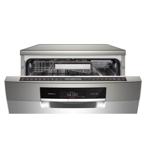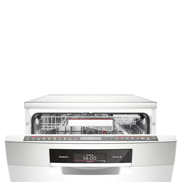 ماشین ظرفشویی بوش مدل SMS8ZDW86 یکی از جدیدترین دستگاه هایی است که کمپانی بوش به دنیای لوازم خانگی عرضه کرده که دارای ظرفیت 13 نفره می باشد. این ظرفشویی بوش سری 8 دارای بدنه ای به رنگ سفید است و با توجه به ظرفیتی که دارد مناسب استفاده خانواده های پر جمعیت می باشد. با توجه به برنامه های اصلی و گزینه های ویژه ای که این ظرفشویی دارد یکی از مهمترین کارهای مربوط به آشپزخانه که شستشوی ظروف می باشد با سرعت و در کمترین زمان ممکنه انجام می شود. علاوه بر این موارد استفاده از موتور قدرتمند بوش ecosilence drive در این مدل موجب شده که عملکرد دستگاه با صدایی بسیار کم در حدود 42 دسی بل باشد بنابراین استفاده از آن در هر ساعتی از شبانه روز بلامانع می باشد زیرا صداهای مزاحمی ایجاد نمی کند. با خرید ماشین ظرفشوی سری 8 بوش با توجه به قابلیت ها و کاربردهایی که دارد می توانید با یک تیر دو نشان بزنید، زیرا عملکرد و شستشو هایی که ارائه می دهد بدون نقص می با شد و همواره ظروفی تمیز و عاری از هر گونه آلودگی و میکروب خواهید داشت.
