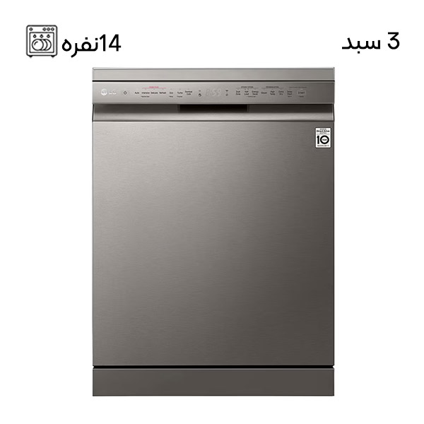 ماشین ظرفشویی ال جی DFB425FP یا 425 یکی از مدلهای مدرن و خوش ساخت این برند کرهای است که با ظرفیت 14 نفره، طراحی سه طبقه و رنگ خاص انتخابی ایدهآل برای خانوادههای پرجمعیت به شمار میرود. این محصول به عنوان ماشین ظرفشویی ال جی DFB425 یا B425 و یا 425 نیز ممکن است در بازار معرفی شود که مدل کامل آن نیست. بنابراین بهتر است در هنگام خرید به مدل کامل آن که روی برچسب محصول درج شده است توجه نمایید. ماشین ظرفشویی 14 نفره ال جی DFB425FP مجهز به موتور دایرکت درایو اینورتر (Inverter Direct Drive) بوده و به کمک آن شستشو را با تولید کمترین میزان صدای اضافه انجام میدهد. از دیگر ویژگیهای این محصول، کیفیت بالای قطعات و طول عمر بالای آنها میباشد به طوری که ال جی عملکرد بینقص موتور آن را تا 10 سال تضمین کرده است. این ماشین ظرفشویی به طور متوسط در هر دور شستشو حدود 9.6 لیتر آب مصرف میکند و دارای 10 برنامه شستشوی مختلف برای تمیز کردن هر نوع ظرفی با هر میزان کثیفی میباشد. ماشین ظرفشویی ال جی DF325F نیز مدل جدیدتر این محصول بوده که امکانات گستردهتری را در اختیار شما قرار میدهد.
