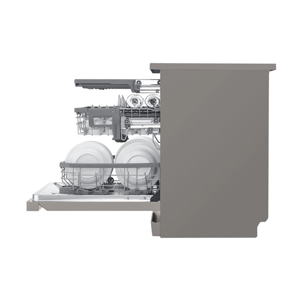 گزینه Dual Zone در ماشین ظرفشویی 14 نفره ال جی 425 به طور خودکار شدت اسپری را برای بازوی اسپری بالایی روی ملایم و برای بازوی اسپری پایینی روی قوی تنظیم میکند. ظروف بسیار کثیف مانند بشقاب و کاسه را در قفسه پایینی و ظروف کم کثیف مانند فنجان و بشقابهای کوچک را در قفسه بالایی قرار دهید تا بهترین نتیجه را بگیرید. مفهوم اصلی Dual Zone این است که ماشین ظرفشویی میتواند فشار آب و شدت پاشش را بین دو قفسه تغییر دهد. این ویژگی برای موقعیتهایی طراحی شده است که انواع مختلفی از ظروف نیاز به روشهای تمیز کردن متفاوت در یک بار دارند. قابلیت Half Load یا نیم بار با انتخاب قفسههای بالا یا پایین، شستشو را به صورت فشرده انجام میدهد. برای بارهای کم، فقط از قفسه بالا یا پایین استفاده کنید تا در مصرف انرژی و زمان صرفهجویی کنید. شما باید تنظیمات اینکه ظروف در کدوم قفسه قرار دارند به صورت دستی مشخص کنید. با فشار دادن دکمه نیمه بار تنظیمات سبد بالایی سبد پایینی و لغو این گزینه در دسترس هستند. قابلیت TrueSteam از قدرت بخار برای نفوذ و بلند کردن ذرات غذای پخته شده یا خشک شده استفاده میکند و آن را در تمیز کردن حتی کثیفترین ظروف مؤثر میسازد. طبق گفته ال جی TrueSteam میتواند تا 99.999٪ باکتریها و میکروبها را از بین ببرد و شستشوی بهداشتیتری را ارائه دهد. گزینه High Temp دمای اصلی شستشو را افزایش میدهد تا تمیز کردن را بهبود بخشد، به خصوص برای ظروف بسیار کثیف. این دمای بالاتر به حل شدن و حذف بهتر غذاهای سفت و پخته شده و چربی کمک میکند. یک زنگ هشدار به شما در مورد هرگونه دمای باقی مانده در داخل دستگاه هشدار میدهد. قبل از باز کردن درب، صبر کنید تا دستگاه کاملا خنک شود. برای صرفهجویی بیشتر در مصرف انرژی شما همچنین میتوانید از قابلیت Energy Saver استفاده کرده که نحوه کار آن با کاهش دمای آب و کاهش دمای خشک کردن میباشد. در ساخت ماشین ظرفشویی ال جی B425 از تکنولوژی QuadWash استفاده شده تا بتواند آب را از طریق 4 پره روی بازویهای چرخشی خود به سمت ظرفها اسپری کند. این تکنولوژی باعث میشود آب از همه جهتها به ظرفهای کثیف برسد و تمامی ظرفها به صورت کامل و از همه زوایا تمیز شوند.