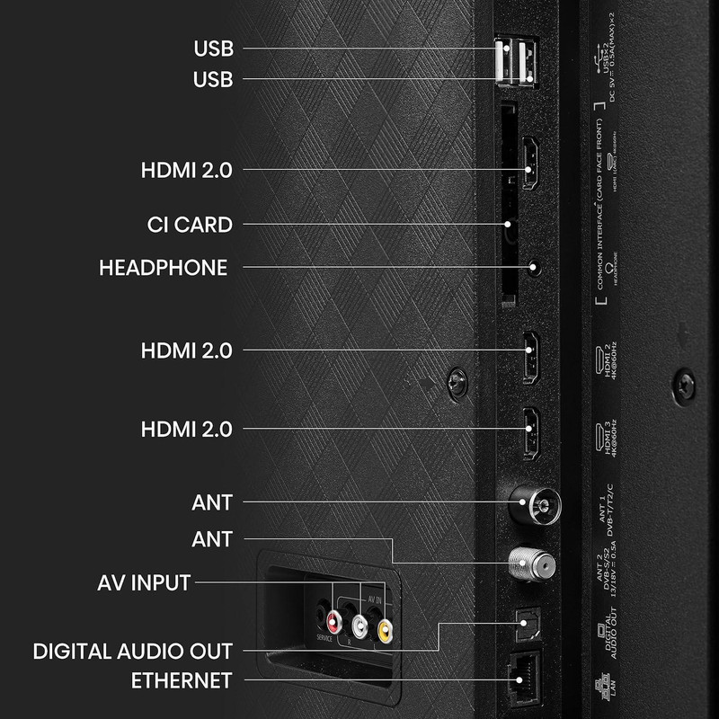 | سایر توضیحات | مجهز به سیستم کاهش دهنده نویز تصاویر / دارای فناوری Quantum Dot / دارای اکولایزر (Equalizer) / پشتیبانی از دستیار صوتی Alexa / پشتیبانی از شبکه های تلویزیونی ۴K / پشتیبانی از فرمتهای صدا MPEG/ WMA/ FLAC/ MP۳/ AAC/ WAV/ OPUS / دارای زاویه دید ۱۷۸ درجه / دارای روشنایی ۲۷۵ نیت / دارای کنتراست ۳۸۰۰:۱ / قابلیت ارتقاء کیفیت تصویر / مجهز به بلوتوث / دارای مرورگر اینترنت / کنتراست بالا با عمق رنگ زیاد / مجهز به نور پس زمینه direct full array |