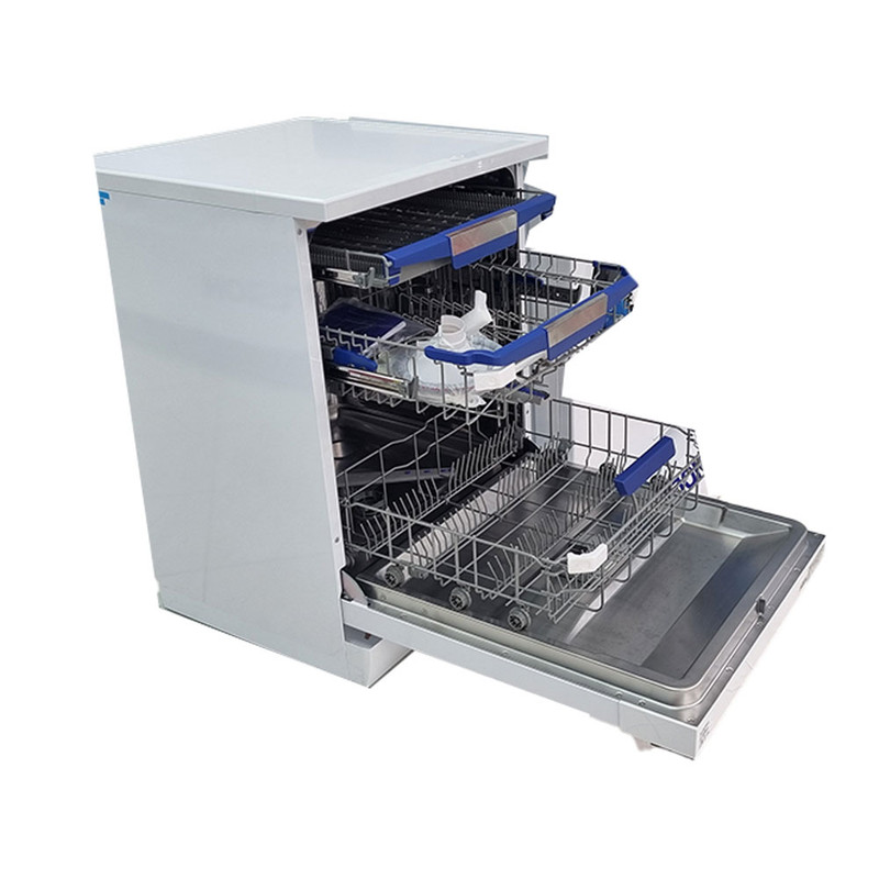 ماشین ظرفشویی 14 نفره ایکسویژن مدل M160 با طراحی مدرن و ویژگیهای پیشرفته، یکی از بهترین انتخابها برای خانوادههای پرجمعیت و میزبانهای حرفهای است. این مدل با ابعاد استاندارد (ارتفاع 85 سانتیمتر، پهنا 59.8 سانتیمتر و عمق 60 سانتیمتر) بهراحتی در فضای آشپزخانه جای میگیرد. طراحی و ظاهر جذاب این دستگاه به زیبایی دکوراسیون آشپزخانه شما میافزاید. ظرفیت 14 نفره این ماشین ظرفشویی امکان شستوشوی حجم بالایی از ظروف را تنها در یک چرخه فراهم میکند. وجود سه سبد مجزا و قابلیت شستوشوی با نصف ظرفیت باعث انعطافپذیری بیشتر در استفاده روزمره میشود. موتور اینورتر دیجیتال با کاهش مصرف انرژی و تولید صدای پایین (42 دسیبل)، عملکردی بهینه و کمصدا را تضمین میکند. ویژگیهای پیشرفتهای مانند قابلیت اسپری آب 360 درجه، شستوشوی سریع (Rapid Wash) و سیستم خشککن اضافی (Extra Drying) این مدل را از دیگر رقبا متمایز کرده است. قابلیت باز شدن خودکار درب پس از اتمام شستوشو (Auto Open) هم به افزایش کیفیت خشککنندگی ظروف کمک میکند. ماشین ظرفشویی ایکسویژن مدل M160 با 10 برنامه شستوشو، بهخوبی نیازهای مختلف کاربران را پوشش میدهد. نمایشگر LED و فیلتر ضدباکتری استفاده راحت و بهداشتی را تضمین میکنند. با رتبه انرژی A++، این دستگاه بهرهوری بالایی در مصرف انرژی دارد و در بلندمدت اقتصادی محسوب میشود. سیستم ایمنی قفل کودک هم برای خانوادههای دارای کودکان خردسال گزینهای کاربردی است. ماشین ظرفشویی ایکسویژن مدل M160 ترکیب ویژگیهای مدرن، ظرفیت بالا و عملکردی کمصدا را ارائه میدهد، که آن را به انتخابی هوشمندانه برای هر خانهای تبدیل میکند.