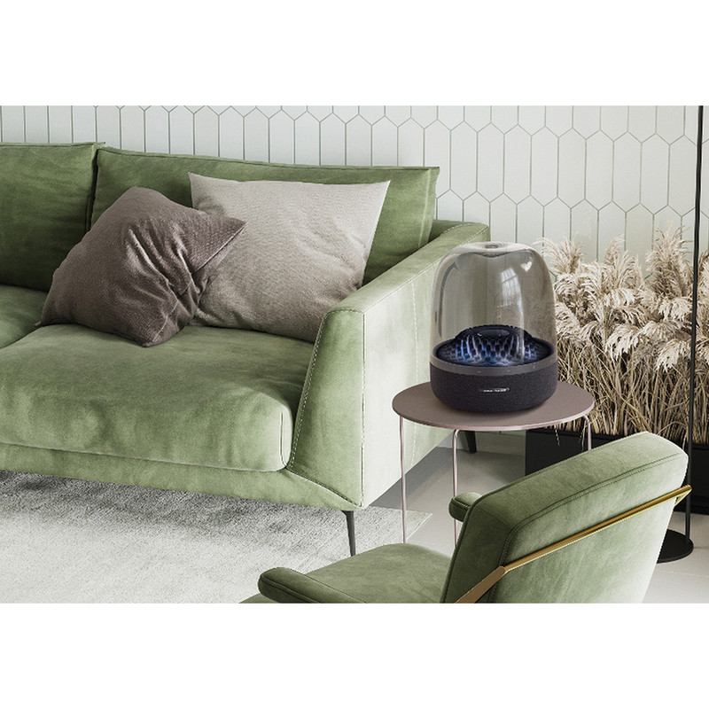 اسپیکر بلوتوثی هارمن کاردن مدل Aura Studio 4، یک اثر هنری مدرن است که با موفقیت، مهندسی صدای پیشرفته را با طراحی بصری خیرهکننده و نورپردازی محیطی پویا ترکیب کرده است. صدای فراگیر ۳۶۰ درجه با توان ۱۳۰ وات، بیس عمیق و کوبنده، شفافیت و تفکیک عالی در فرکانسهای میانی و بالا، گنبد شفاف نمادین با رقص نور الماسی پارامتریک و اتصالات بیسیم و سیمی کاربردی، همگی این اسپیکر را به گزینهای بیرقیب برای علاقهمندان به موسیقی و افرادی که به زیبایی و کیفیت در دکوراسیون منزل خود اهمیت میدهند، تبدیل کردهاند. Aura Studio 4 فراتر از یک اسپیکر، یک تجربهی حسی کامل است که هر فضایی را به یک سالن کنسرت خصوصی یا یک گالری هنری پویا تبدیل میکند و لحظات شما را با موسیقی و نور، جاودانه میسازد.