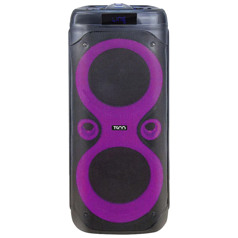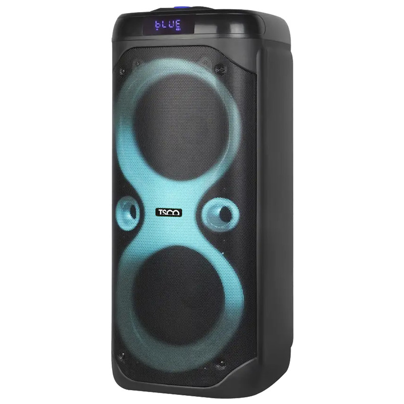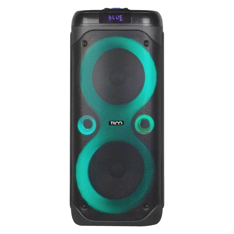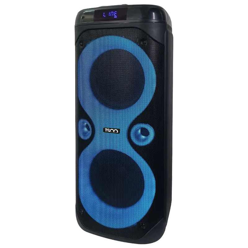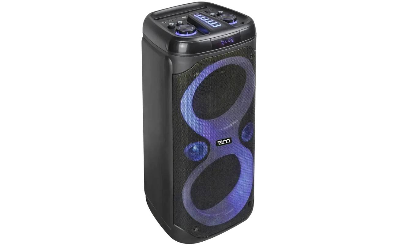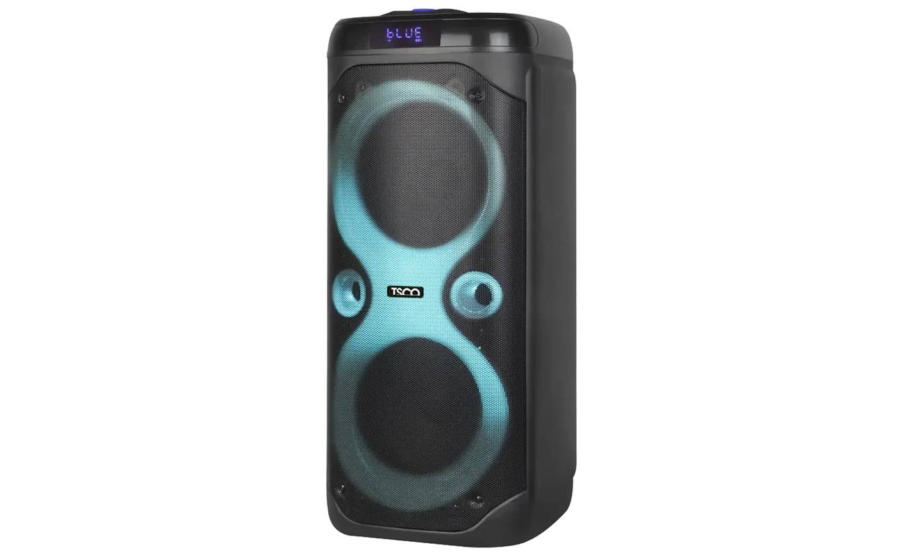 اسپیکر TS 1905 در دسته محصولات قابل حمل قرار میگیرد، اما طراحی آن به شکلی است که حس یک دستگاه قدرتمند و حرفهای را القا میکند. ابعاد بزرگ این مدل برابر با ۶۱۰x۲۶۵x۲۶۰ میلیمتر بوده و وزن آن حدود ۶.۳ کیلوگرم است که برای یک اسپیکر قابل حمل با عملکرد بالا کاملاً منطقی به نظر میرسد. بدنه این اسپیکر از پلاستیک مقاوم ساخته شده است، که علاوه بر کاهش وزن نسبت به بدنههای فلزی، دوام قابلقبولی در برابر ضربه و فشار معمولی ارائه میکند. بخش جلویی دستگاه میزبان یک سابووفر ۸ اینچی است که نقطه قوت اصلی آن در تولید بیس عمیق و پر حجم محسوب میشود. وجود رقص نور RGB جلوهای جذاب و مدرن به اسپیکر بخشیده و آن را برای استفاده در مهمانیها ایدهآل کرده است. این نورپردازی با موسیقی هماهنگ شده و قابلیت افزایش جذابیت بصری را دارد. توان خروجی کلی اسپیکر TS 1905 برابر با ۵۰۰۰ وات بوده که البته توان واقعی RMS هر بلندگو معادل ۳۰ وات است. این مقیاس برای کاربران خانگی و حتی جمعهای بزرگ، قدرت مطلوبی را فراهم میکند. حساسیت صدای دستگاه برابر با ۷۸ دسیبل بوده که نشان میدهد این مدل میتواند حجم صوتی بالایی را با کمترین افت کیفیت تولید کند.