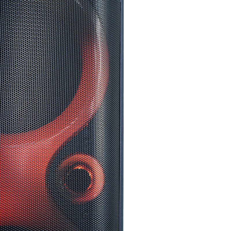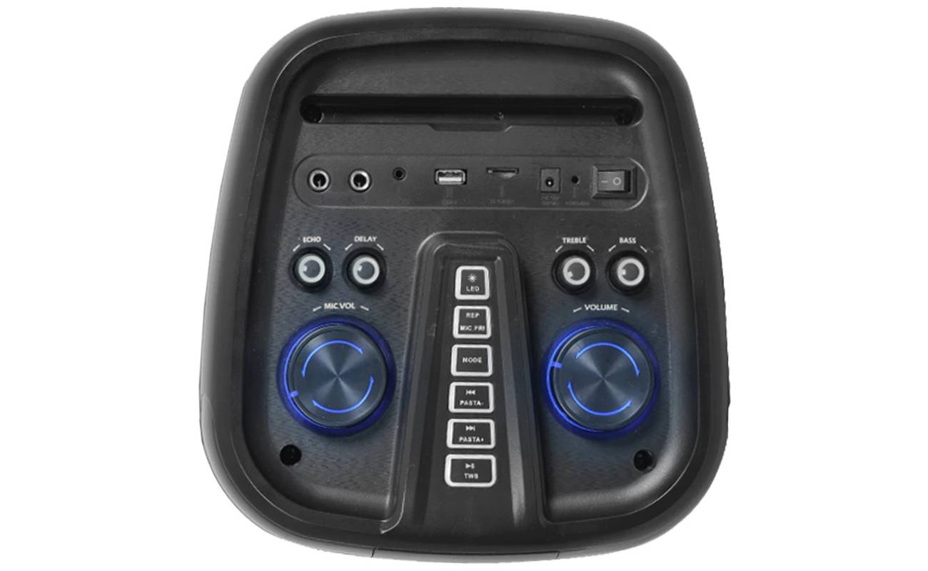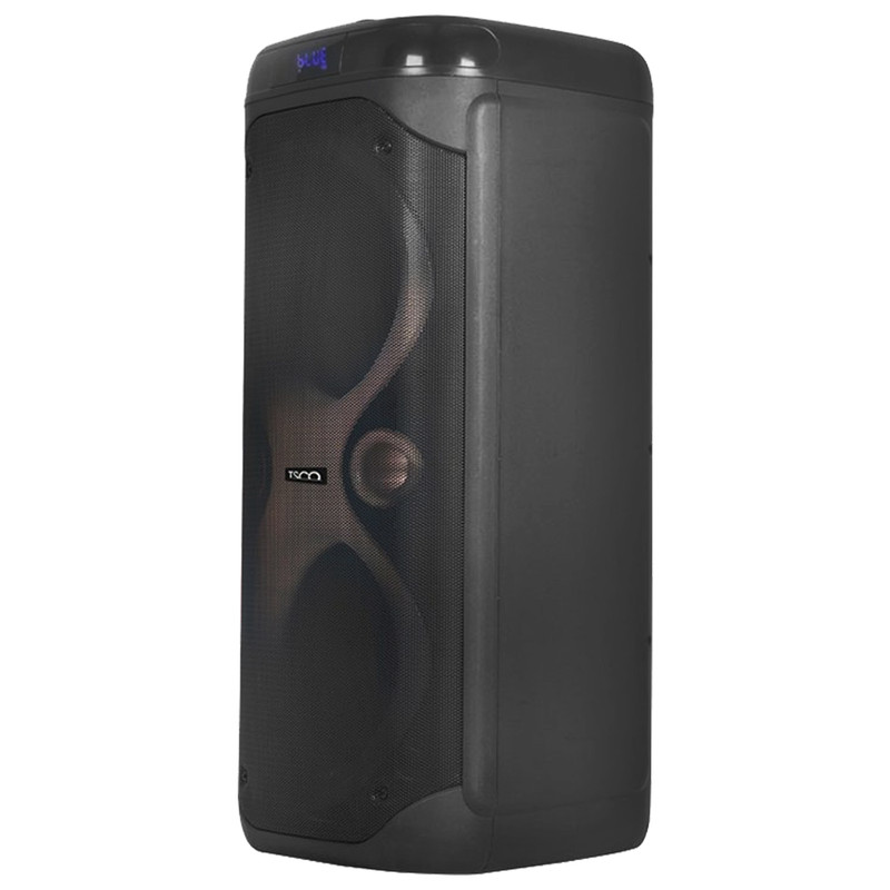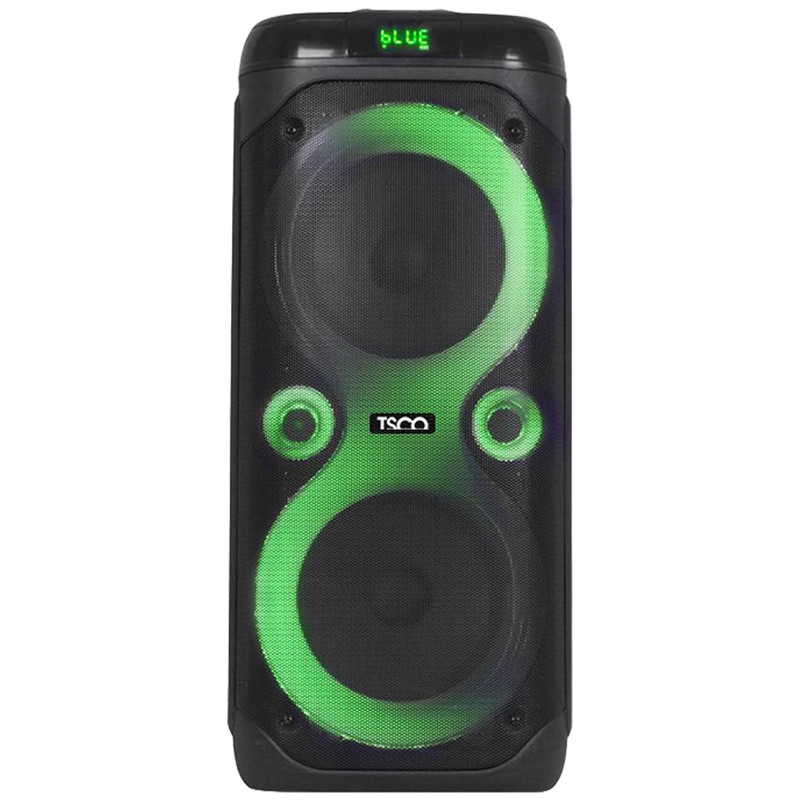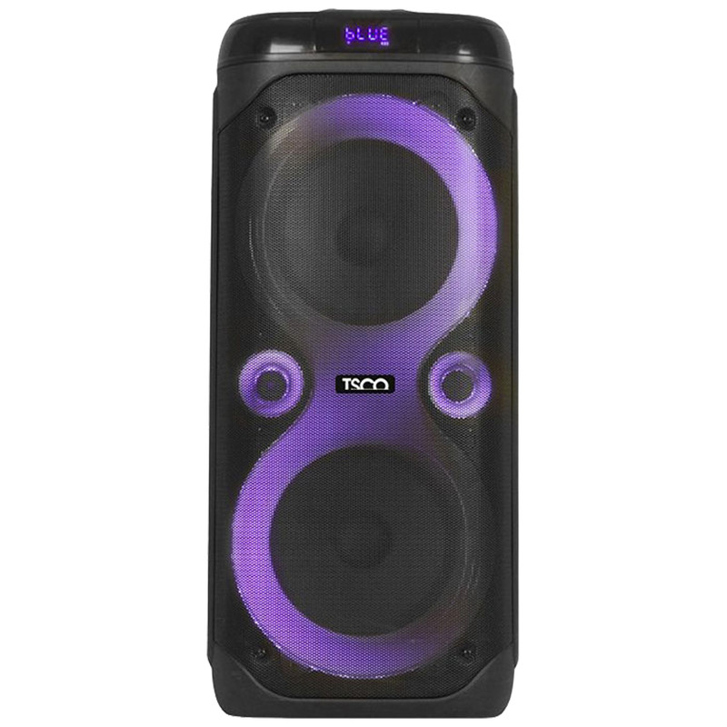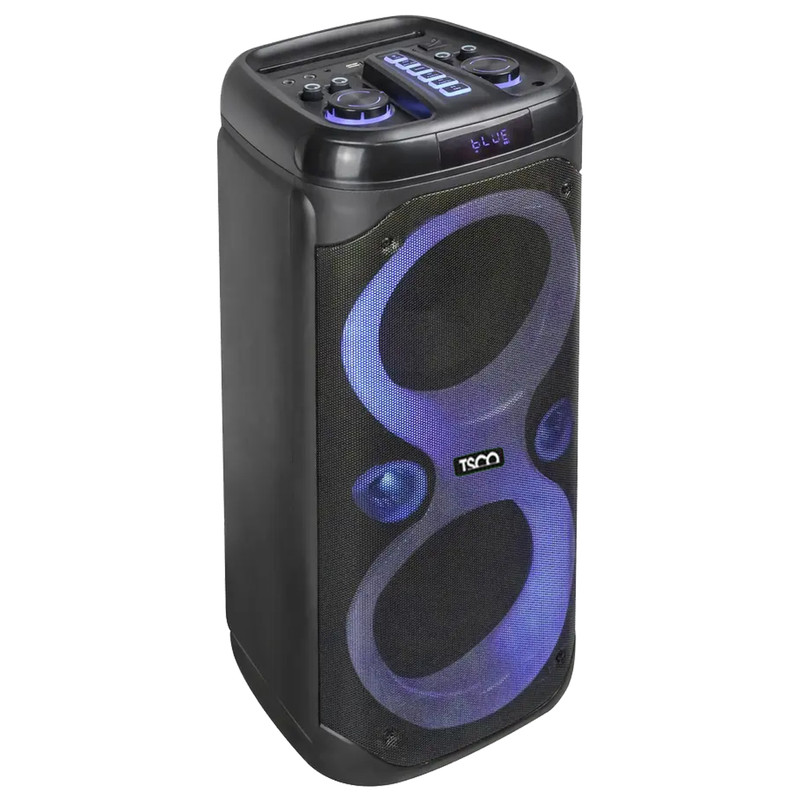 اسپیکر TS 1905 در دسته محصولات قابل حمل قرار میگیرد، اما طراحی آن به شکلی است که حس یک دستگاه قدرتمند و حرفهای را القا میکند. ابعاد بزرگ این مدل برابر با ۶۱۰x۲۶۵x۲۶۰ میلیمتر بوده و وزن آن حدود ۶.۳ کیلوگرم است که برای یک اسپیکر قابل حمل با عملکرد بالا کاملاً منطقی به نظر میرسد. بدنه این اسپیکر از پلاستیک مقاوم ساخته شده است، که علاوه بر کاهش وزن نسبت به بدنههای فلزی، دوام قابلقبولی در برابر ضربه و فشار معمولی ارائه میکند. بخش جلویی دستگاه میزبان یک سابووفر ۸ اینچی است که نقطه قوت اصلی آن در تولید بیس عمیق و پر حجم محسوب میشود. وجود رقص نور RGB جلوهای جذاب و مدرن به اسپیکر بخشیده و آن را برای استفاده در مهمانیها ایدهآل کرده است. این نورپردازی با موسیقی هماهنگ شده و قابلیت افزایش جذابیت بصری را دارد. توان خروجی کلی اسپیکر TS 1905 برابر با ۵۰۰۰ وات بوده که البته توان واقعی RMS هر بلندگو معادل ۳۰ وات است. این مقیاس برای کاربران خانگی و حتی جمعهای بزرگ، قدرت مطلوبی را فراهم میکند. حساسیت صدای دستگاه برابر با ۷۸ دسیبل بوده که نشان میدهد این مدل میتواند حجم صوتی بالایی را با کمترین افت کیفیت تولید کند.