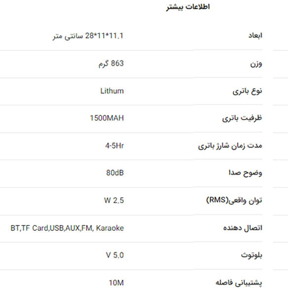 اسپیکرهای پرتابل، از پرکاربردترین و محبوبترین دستگاههای صوتی به شمار میروند که این روزها در تنوع و اندازههای مختلف، با کاربریهای هیجانانگیزی طراحی و تولید شده و به بازار ارائه شدهاند. این دستگاههای پرطرفدار، باید طوری تعبیه شده باشند که وزن مناسب و حمل آسانی داشته باشند، همچنین بادوام باشند و طول عمر بالایی داشته باشند و در تولید آنها از متریال مناسبی استفاده شده باشد، مقاوم به ضربه و گرد و غبار باشند تا بهراحتی و با خیال راحت بتوانیم آنها را به هرجا که میخواهیم حمل کنیم. اسپیکر تسکو مدل TS 23150 از جمله اسپیکرهای جدید OUTDOOR از برند تسکو است که شما میتوانید آن را در موقعیتهای مختلف همراه خود داشته باشید و از گوش دادن به موسیقی لذت ببرید. این محصول جذاب و پرکاربرد در ابعاد 11.1x11x28 سانتیمتر و وزن 863 گرم در رنگ مشکی طراحی و تولید شده، انرژی مورد نیاز آن توسط یک باتری لیتیومی 1500 میلیآمپرساعتی تامین میشود که به 4 الی 5 ساعت زمان نیاز دارد تا فول شارژ شود. اتصال اسپیکر پرتابل تسکو مدل TS 23150 از طریق بلوتوث ورژن 5.0 صورت میگیرد که برد مفیدی تا 10 متر دارد. اسپیکر تسکو مدل TS 23150 اتصال از طریق USB/TF/AUX را نیز پشتیبانی میکند و از دیگر قابلیتهای مهم آن میتوان به مجهز بودن آن به فناوری TWS و پشتیبانی از عملکرد KARAOKE و رادیو اشاره کرد. این دستگاه وضوح صدای 80DB و توان واقعی 5x2 وات دارد. اقلام همراه این محصول شامل دفترچهی راهنما، کابل USB و AUX و میکروفون سیمی هستند.