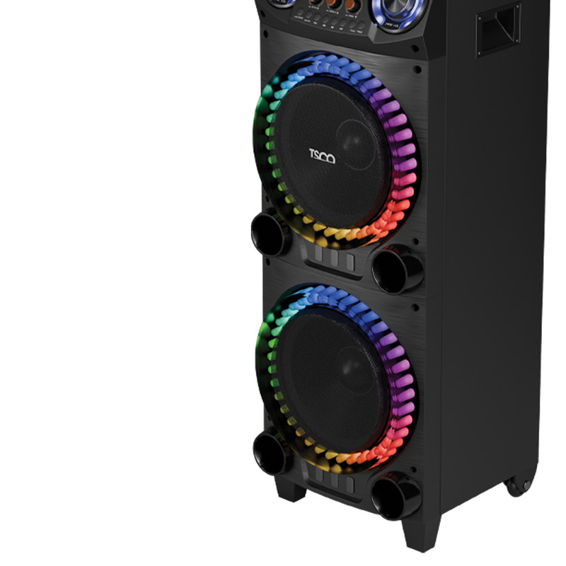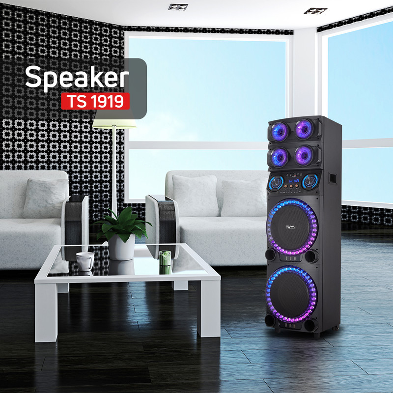 اسپیکر TS1919 مجهز به یک نمایشگر کوچک است که وضعیت فعلی دستگاه و حالتهای مختلف آن را نمایش میدهد. این نمایشگر به کاربران کمک میکند تا بدون نیاز به حدس زدن، بدانند دستگاه در چه حالتی قرار دارد یا چه ورودیای فعال است. همچنین، پنل کنترل حرفهای این اسپیکر شامل دکمههایی برای تنظیم حجم صدا، باس، تریبل، و اکو میکروفون است. یکی از ویژگیهای برجسته اسپیکر TS1919، قدرت خروجی بالای آن است. این اسپیکر با توان خروجی PMPO معادل 22000 وات و RMS برابر با 80 وات، قادر است صدایی فوقالعاده قدرتمند و شفاف تولید کند. ووفرهای 12 اینچی دوگانه این اسپیکر، به تولید باسهای عمیق و غنی کمک میکنند، در حالی که تیوتر 3 اینچی آن تضمین میکند که فرکانسهای بالاتر نیز با وضوح کامل پخش شوند. نسبت سیگنال به نویز (S/N Ratio) یکی از مهمترین معیارها برای سنجش کیفیت صدا در اسپیکرها است. اسپیکر TS1919 با S/N Ratio برابر با 80 دسیبل، تضمین میکند که صدای پخش شده از آن، حتی در بالاترین ولومها، بدون نویز و با وضوح بسیار بالا باشد. این اسپیکر از چندین نوع اتصال پشتیبانی میکند که شامل بلوتوث نسخه 5.3، پورتهای USB، کارت حافظه TF، رادیو FM و ورودی AUX میشود. این مجموعه از اتصالات، این امکان را به کاربر میدهد تا از هر منبعی، چه بیسیم و چه باسیم، موسیقی یا محتوای صوتی مورد نظر خود را پخش کند. یکی دیگر از ویژگیهای جذاب اسپیکر TS1919، قابلیت ضبط صدا و کارائوکه است. این اسپیکر دارای ورودیهای میکروفون است که به شما اجازه میدهد تا میکروفونهای خود را به آن متصل کرده و به راحتی صداهای مختلف را ضبط کنید یا در جلسات کارائوکه شرکت کنید. اسپیکر TS1919 توانایی پخش انواع فرمتهای صوتی از جمله MP3، APE و WMA را دارد. با توجه به قدرت خروجی بالا و کیفیت صدای بینظیر، اسپیکر TS1919 انتخابی عالی برای استفاده در مهمانیها و مراسم مختلف است. این اسپیکر به راحتی میتواند فضای یک مهمانی بزرگ را با صدای قوی و شفاف پر کند. اسپیکر TS1919 تنها برای استفاده در مراسمهای بزرگ نیست. این اسپیکر با طراحی زیبا و اتصالات متنوع، میتواند به راحتی در خانه نیز استفاده شود.