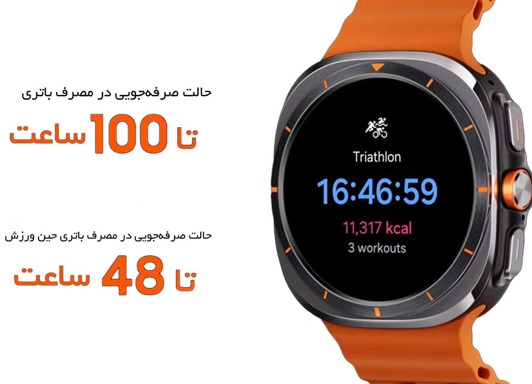 یکی از مهمترین ویژگیهای هر ساعت هوشمند، عمر باتری آن است. سامسونگ در طراحی Galaxy Watch 7 Ultra به این مسئله توجه ویژهای داشته است. این ساعت هوشمند مجهز به یک باتری با ظرفیت 590 میلیآمپر ساعت است که عملکرد قابل قبولی را ارائه میدهد. بر اساس ادعای سامسونگ، این ساعت میتواند در شرایط استفاده معمولی تا 80 ساعت دوام بیاورد. این یعنی کاربران میتوانند سه روز از ساعت استفاده کنند بدون نیاز به شارژ مجدد. البته این عمر باتری در صورتی است که ویژگیهای مصرفکننده باتری مانند نمایشگر همیشه روشن، تنظیمات بلوتوث و Wi-Fi و سایر امکانات در حالت متعادل و معمولی استفاده شوند. در صورت استفاده از ویژگیهای پیشرفتهتر مانند ردیابی فعالیتهای ورزشی، سنجش ضربان قلب و مانیتورینگ خواب، عمر باتری به طور قابل ملاحظهای کاهش مییابد و به حدود 40 ساعت میرسد. یکی از ویژگیهای مهم باتری این ساعت، پشتیبانی از تکنولوژی شارژ سریع است. با استفاده از این قابلیت، میتوان باتری ساعت را در مدت زمان کوتاهی به طور کامل شارژ کرد. همچنین ساعت Galaxy Watch 7 Ultra از قابلیت شارژ بیسیم نیز پشتیبانی میکند. این امکان به کاربران اجازه میدهد تا بتوانند ساعت را بدون نیاز به اتصال مستقیم به شارژر، به صورت بیسیم شارژ کنند. در مجموع، عمر باتری این ساعت هوشمند در محدوده معقولی قرار دارد و میتواند نیاز اکثر کاربران را برطرف کند.