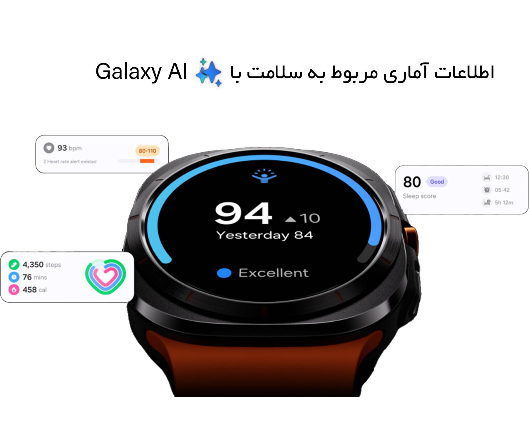 ساعت هوشمند Galaxy Watch 7 Ultra جامعترین قابلیتهای ردیابی سلامتی و ورزشی را که تا به امروز در یک ساعت هوشمند دیدهایم را در اختیار شما قرار میدهد. در این ساعت از قابلیتهای پایه مثل ردیابی ورزشی و ردیابی خواب گرفته تا قابلیتهای حرفهایتر دیده میشود. علاوه بر حالت چندورزشی و متریکهای دوچرخه سواری Functional Treshold Power (آستانه عملکردی قدرت)، این ساعت با ردیابی میزان ضربان قلب به شما کمک میکند که با شدت مناسب به ورزش و فعالیت بپردازید. قابلیتهای سلامتی گلکسی واچ ۷ الترا توسط سنسور BioActive به روز شده سامسونگ که وظیفه ردیابی ضربان قلب، نوار قلب و اکسیژن خون را بر عهده دارد به همراه سنسور BIA که ترکیبات بدنی را تشخیص میدهد اندازهگیری میشوند. اطلاعات ثبت شده توسط این سنسورها در اختیار Galaxy AI قرار میگیرند و از طریق بخشهای مختلفی مثل Energy Score، Wellness Tips و جدیدترین الگوریتم Sleep AI برای شما تحلیل خواهند شد. همچنین این ساعت از جدیدترین شاخصهای ردیابی AGEs هم پشتیبانی میکند و میتواند سلامت متابولیک شما را هم بهبود ببخشد. علاوه بر این سنسورها، ساعت Galaxy Watch 7 Ultra مجهز به سنسور دمای محیط است که میتواند دمای بدن را نیز اندازهگیری کند. همچنین این ساعت از شتابسنج، بارومتر، ژیروسکوپ، سنسور ژئومغناطیسی و سنسور نور محیط نیز بهره میبرد. این حسگرها به طور یکپارچه عمل میکنند تا اطلاعات ارزشمندی در زمینههای مختلف مانند ردیابی فعالیت، تشخیص حرکات و تغییرات محیطی را ارائه دهند.