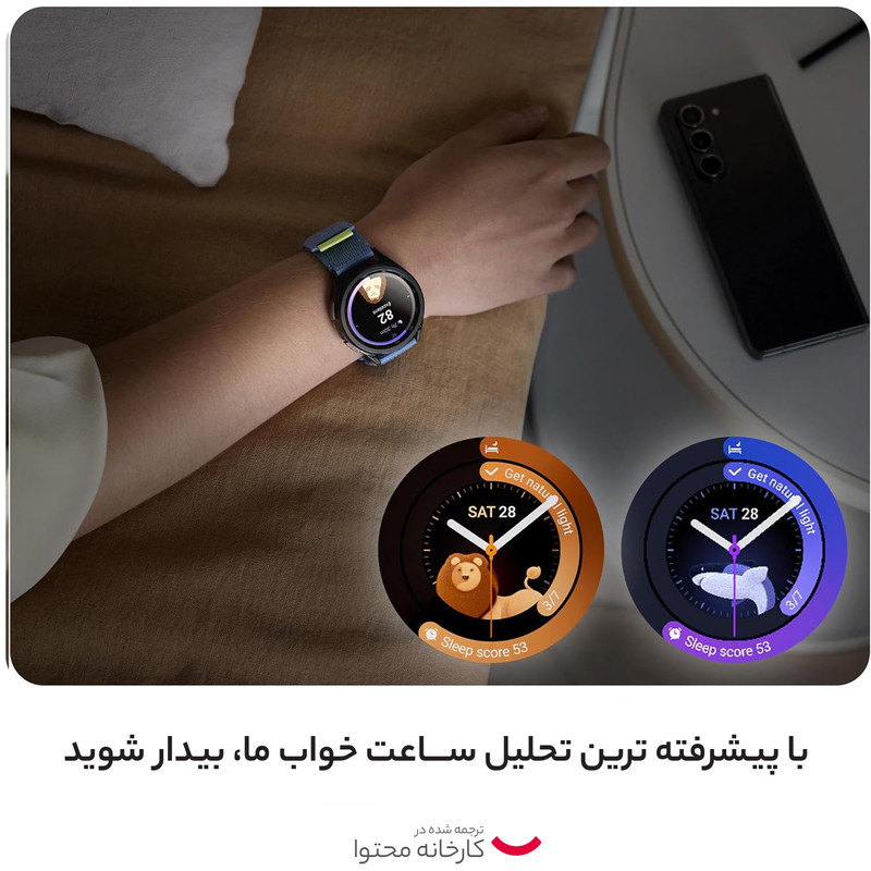 | قابلیت های ویژه | سیستم عامل Android Wear OS 4 و رابط کاربری One UI Watch 5 (قابل ارتقا) / دارای اسپیکر داخلی / بلوتوث نسخه 5.3 / فناوریهای مکانیابی GLONASS, GALILEO, BDS / دارای حسگر میدان مغناطیسی سه بعدی (3D Hall sensor) / مقاومت در برابر نفوذ آب تا عمق 50 متر (IP68) / طراحی با استاندارد نظامی MIL-STD-810H / حاشیههای چرخان (Rotating Bezel) /پشتیبانی از eSIM /Wi-Fi 802.11 a/b/g/n, dual-band |