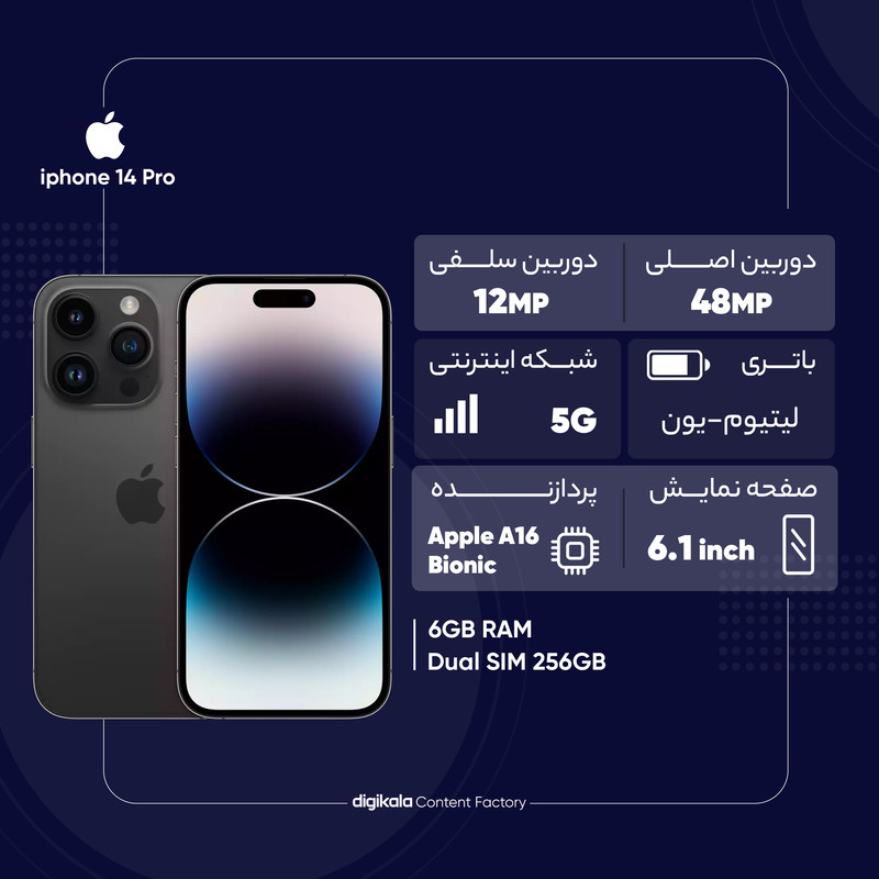 گوشی موبایل اپل مدل iphone 14 Pro دو سیم کارت ظرفیت 256 گیگابایت و رم 6 گیگابایت
