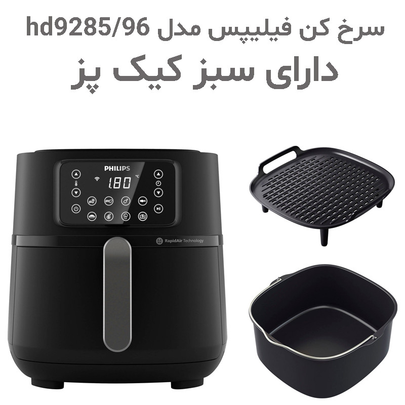 سرخ کن مدل HD9285/96 محصولی با کیفیت و کاربردی از کمپانی نام آشنای فیلیپس می باشد.این مدل محصول در سری های مختلف تولید شده که یکی از مهمترین ویژگی این دستگاه وجود ظرف پخت (کیک ، دسر و ... ) می باشد که درمدل های قبلی موجود نمی باشد ، شما به راحتی میتوانید با کمک این قالب مخصوص که کمپانی فیلیپس طراحی کرده است انواع کیک ، لازانیا ، تهچین و ... را آماده کنید. همچنین این محصول دارای قابلیت وای فای و اتصال گوشی هوشمند به سرخ کن HD9285/96 فیلیپس دیگر امتیاز آن محسوب میشود،با این تکنولوژی مواد غذایی را داخل سبد سرخ کن بگذارید، از طریق گوشی هوشمند خود برنامه مورد نظر را چه به صورت پیش فرض چه از طریق تنظیم دستی اعمال کنید و در نهایت در زمان استراحت و از راه دور روی فرایند پخت نظارت داشته باشید. سرخ کن HD9285/96 فیلیپس با ظرفیت XXL به 16 برنامه مجزا در پخت و پز مجهز شده است. 16 برنامه عبارتند از: سرخ کردن، پختن، گریل یا کباب کردن، برشته کردن، خشک کردن، ، نان تست، یخ زدایی، گرم کردن مجدد، تخمیر و بسیاری موارد دیگر.