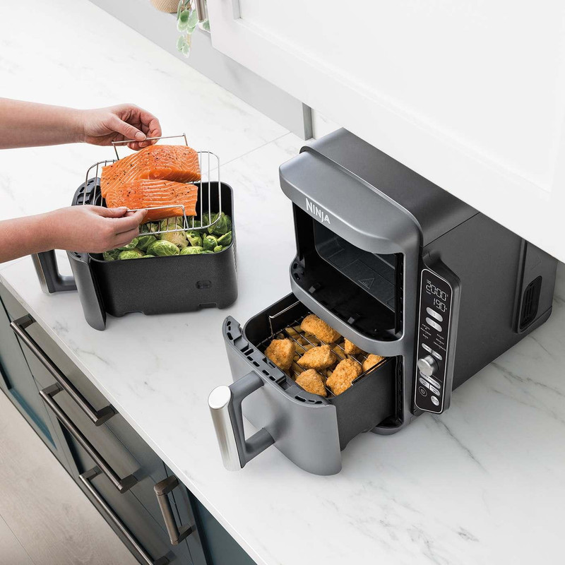 قلب تپندهی عملکرد بینظیر این هواپز، سیستم گرمایش پیشرفتهی آن است که از یک المنت حرارتی قدرتمند در بالا و سیستم کانوکشن برای گردش هوای داغ بهره میبرد. این فناوری، که نینجا در بهینهسازی آن استاد است، با توان شگفتانگیز ۲۴۷۰ وات، هوای فوقالعاده داغ را با سرعت و شدت بسیار زیاد به شکلی کاملا یکنواخت و ۳۶۰ درجه در اطراف مواد غذایی به گردش درمیآورد. نتیجهی این گردش هوای همهجانبه و قدرتمند، پختی کامل، سریع و همگن است که لایهای بیرونی فوقالعاده ترد، طلایی و اشتهاآور ایجاد میکند، در حالی که بخش داخلی مواد غذایی، آبدار، نرم و کاملا پخته باقی میماند. این روش پخت هوشمندانه، علاوه بر حفظ طعم و بافت طبیعی مواد غذایی، نیاز به استفاده از روغن را تا حد زیادی نسبت به روشهای سرخ کردن سنتی کاهش میدهد و به شما کمک میکند تا از غذاهای سرخشدهی مورد علاقهی خود با کمترین میزان چربی و کالری لذت ببرید.