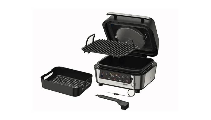 | سایر توضیحات | ظرفیت سبد هواپز: ۶ لیتر /جنس بدنه: ترکیب پلاستیک و استیل ضدزنگ /پنج برنامه اختصاصی برای مواد پروتئینی شامل گوشت گاو / بره / مرغ / ماهی / پروتئین گیاهی با پنج سطح پخت از Rare تا Well-done /عملکرد بدون دود /پوشش نچسب سرامیکی /حداکثر زمان قابل تنظیم: ۱۲ ساعت /ترمومتر هوشمند با سنجش لحظهای دمای داخلی مواد غذایی |