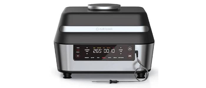 سرخ کن و گریل نوتریکوک مدل AFG960 دستگاه باکیفیت، قدرتمند و هوشمند 1760 واتی است که با 6 برنامه طبخ، پخت 5 نوع مواد غذایی پروتئینی، دماسنج هوشمند، 5 سطح درجه حرارت و ظرف پخت 8.5 لیتری، سرخ کردن و کباب کردن غذاها در فضای باز را شبیه سازی کرده و این امکان را فراهم کرده به راحتی و سریع از غذاهای کبابی سالم و خوشمزه لذت ببرید