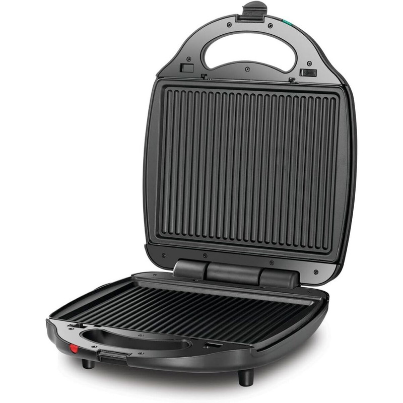 | سایر توضیحات | توان مصرفی 1400 وات، دارای صفحات ساندویچ ساز، گریل و وافل ساز، پوشش صفحات از جنس تفلون نچسب و با کیفیت بالا، قابلیت استفاده بصورت حالت باز 180 درجه، صفحات جداشو و قابل شستشو، قابلیت آماده ساز هر بار 4 عدد نان تست یا 8 تکه مثلثی، قابلیت گریل کردن مرغ، ماهی، گوشت و سبزیجات، قابلیت آماده سازی چهار عدد وافل در هر مرتبه استفاده |