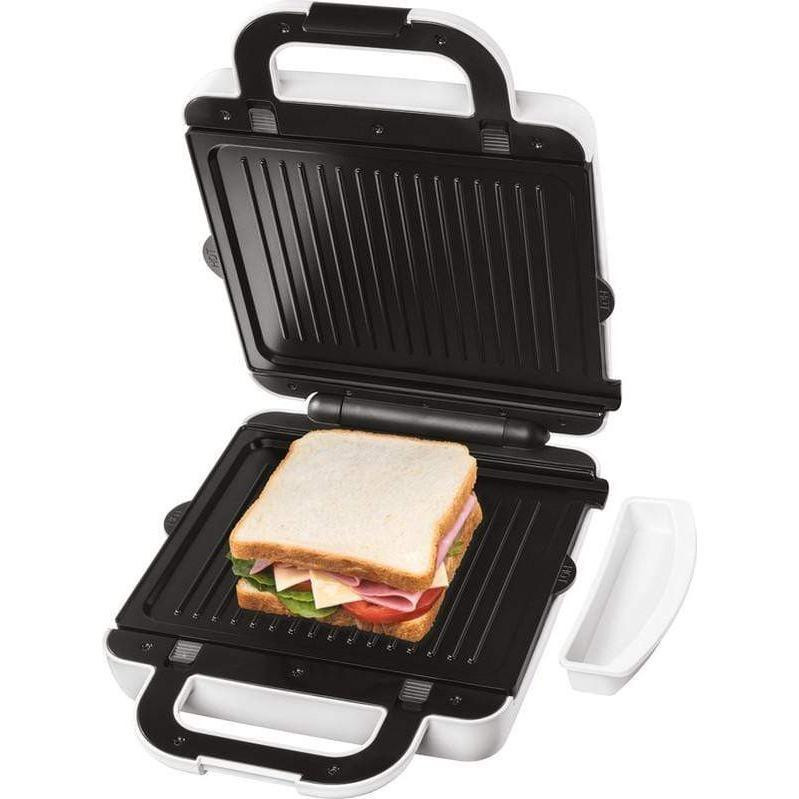 ساندویچ ساز کنوود مدل SMP94.A0 از تولیدات باکیفیت و کامل برند کنوود است که با استفاده از آن می توان انواع ساندویچهای خوشمزهی تست شده و همچنین غذاهای کبابی برشته و گریل شده را آماده کنید. توان مصرفی این ساندویچ ساز دارای توان 1300 وات است و از ویژگیهای آن میتوان به برخورداری محصول از صفحه گریل اشاره کرد به این ترتیب میتوانید از این دستگاه علاوه بر کمک گرفتن از آن برای درست کردن ساندویچهای گرم، مواد غذایی را گریل کنید. حسن ساندویچسازها این است که در مدت زمانی اندک مواد غذایی خوش طعمی را برای شما آماده میکنند و به این صورت در زمان شما صرفه جویی میشود. این محصول به گونهای طراحی شده که می توانید برای کباب کردن غذاها نگران ریزش روغن از دستگاه نباشید و به وسیلهی سینی جمعآوری روغن، روغنهای سرریز شده را جمع کنید و نگران کثیف شدن بدنهی دستگاه و سطح آشپزخانه نباشید. پایههای ضدلغزش این ساندویچساز باعث میشوند که نگران سر خوردن آن نباشید و به ثبات دستگاه کمک میکند.
