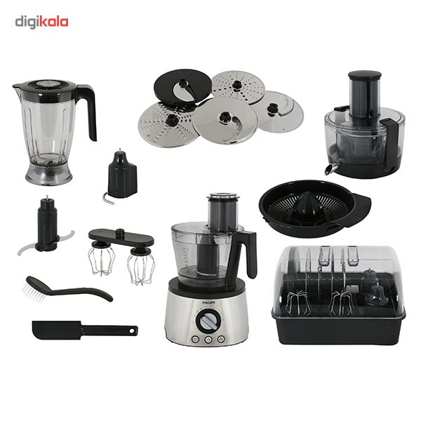 | سایر ویژگیها | - مجهز به فنآوری PowerChop که امکان خرد کردن مواد نرم و سخت را فراهم می سازد.- کلیدهای از پیش تنظیم شده برای عملکرد خاص; خردکردن یخ، زدن خمیر و همزدن کرم- همزن دو قلو با کارایی بیشتر- دارای یک عدد دیسک چیپس ساز که از 1 تا 7 میلی متر قابل تنظیم است.- آبمیوه گیری با دهانه بسیار عریض -میزان صدا: 86 دسی بل |
