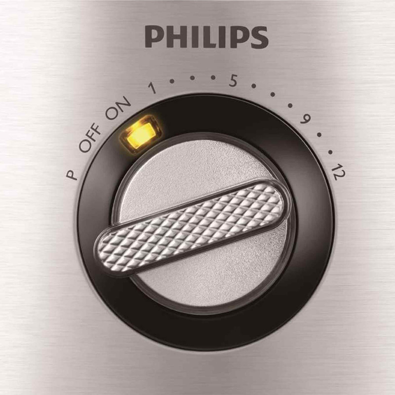 غذاساز «فیلیپس» (Philips) مدل «HR7778» دستگاهی باکیفیت و پرکاربرد است. با این دستگاه میتوانید در خانه نان و کیک بپزید، انواع موادغذایی را خرد یا رنده کرده و انواع نوشیدنیها را تهیه کنید. بدنهی این دستگاه از استیل ضدزنگ ساخته شده است که عمر طولانی دستگاه را تضمین میکند. با کمک دکمهی چرخشی روی دستگاه میتوان سرعت چرخش موتور را تا 12 درجه تغییر داد و در مواجهه با مواد سخت و سفت، با چرخاندن دکمه روی حالت پالس، از حداکثر توان موتور برای چند لحظه استفاده کرد. این دکمهی چرخشی، روکش کرومی دارد و سطح آن طوری طراحی شده است که هنگام کار از دست لیز نمیخورد. دکمههایی برای درستکردن خمیر، کرم و تهیهی نوشیدنی با یخ بهصورت پیشفرض طراحی شدهاند و در صورت فشردن هرکدام از این دکمهها، دستگاه بهصورت خودکار نوع عملکرد انتخابشده را با سرعت مناسب آن عملکرد برای رسیدن به بهترین نتیجه تنظیم میکند.