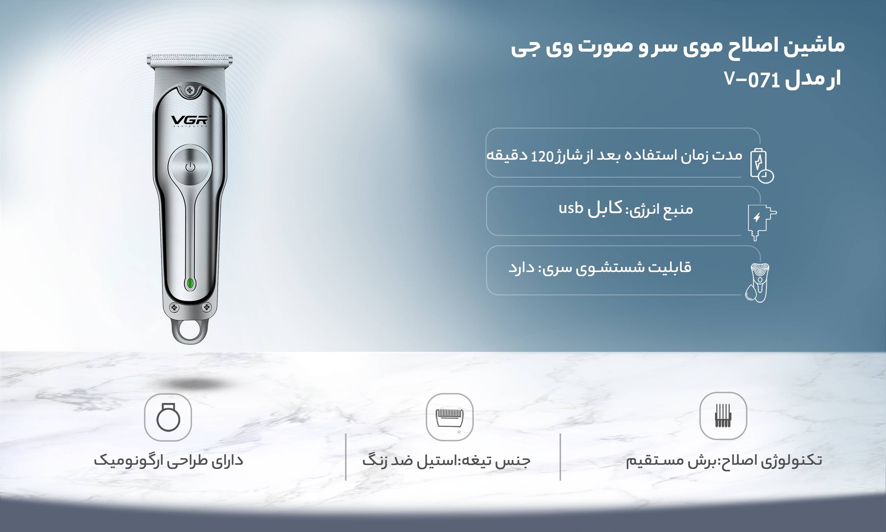 ماشین اصلاح موی سر و صورت وی جی ار مدل V-071