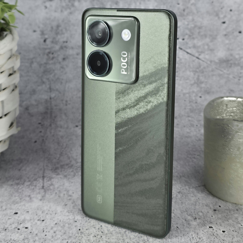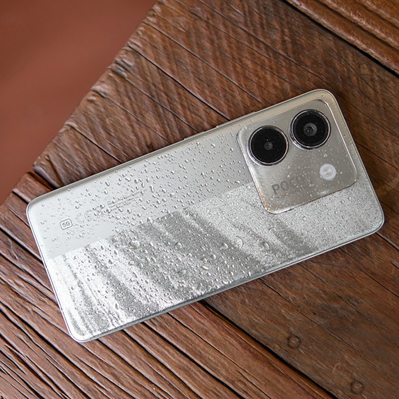 Poco M7 Pro 5Gدر نگاه اول زیبا به نظر میرسد و پشت گوشی توسط یک خط به دو قسمت تقسیم شده است که زیبایی گوشی را دوچندان کرده است. ضخامت این گوشی 8 میلیمتر و وزن آن 190 گرم است و میتوان گفت که ما با یک گوشی خوددست روبرو هستیم. قاب جلویی گوشی با شیشه Gorilla Glass 5 محافظت میشود، در حالی که پشت گوشی و فریم از پلاستیک ساخته شده تا وزن گوشی سبک بماند و از نظر قیمت نیز مقرونبهصرفه باشد. نکته جذاب دیگر، گواهی IP64 و مقاومت نسبی گوشی در برابر گرد و غبار و پاشش آب است و میتواند در شرایط مختلف آب و هوایی مقاوم باشد.
