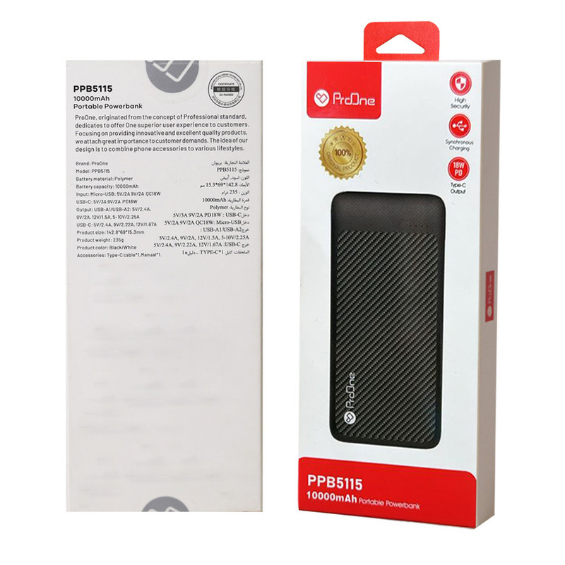 تا به حال در شرایطی بودهاید که گوشی یا تبلت شما درست در لحظهای حساس، خاموش شود و هیچ راهی برای شارژ آن نداشته باشید؟ پاوربانک ProOne مدل PPB5115 این مشکل را برای همیشه برطرف میکند! با ظرفیت ۱۰,۰۰۰ میلیآمپر ساعت، وزن مناسب ۲۳۵ گرم و ابعاد جمعوجور ۱۴۲.۸×۶۹×۱۵.۳ میلیمتر، این پاوربانک بهراحتی در کیف یا جیب شما جا میشود و همیشه انرژی مورد نیاز دستگاههای شما را تأمین میکند. این محصول در دو رنگ مشکی و سفید عرضه میشود، که با هر سلیقهای هماهنگ است. بدنه مقاوم از پلیمر باکیفیت، آن را در برابر ضربه و فشار مقاوم کرده و فناوریهای امنیتی پیشرفته، از دستگاههای شما در برابر نوسانات برق و شارژ بیشازحد محافظت میکند. اگر به دنبال یک پاوربانک سبک، بادوام و با شارژ سریع هستید که در طول روز همیشه همراه شما باشد، ادامهی متن را از دست ندهید!